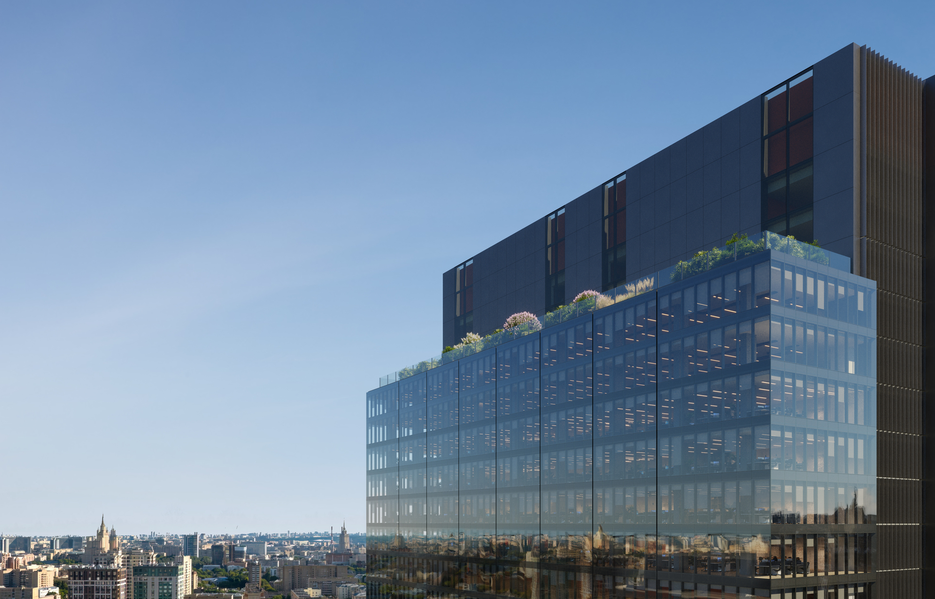 Бизнес-центр FRAME расположен в одном из самых динамичных районов столицы — между двумя транспортными магистралями и ключевыми кольцами Москвы. Это место, где Пресня переходит в деловой центр города, а Москва буквально становится частью вашего пространства.