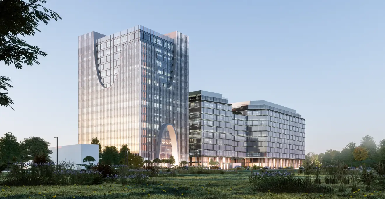 В бизнес-центре предусмотрены просторные двухъярусные лобби, оснащенные удобными зонами ожидания. Также имеются деловые гостевые комнаты с кофейным баром и панорамными окнами, откуда открываются виды на речные пейзажи и зеленые парковые зоны. Эти элементы создают комфортную атмосферу для посетителей и повышают уровень комфорта для арендаторов.