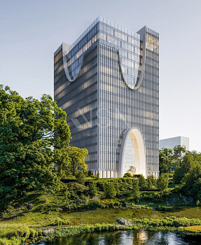 Архитектурное бюро «KLEINEWELT» подготовило ультрасовременный проект премиального бизнес-центра с лаконичным дизайном и современными материалами.