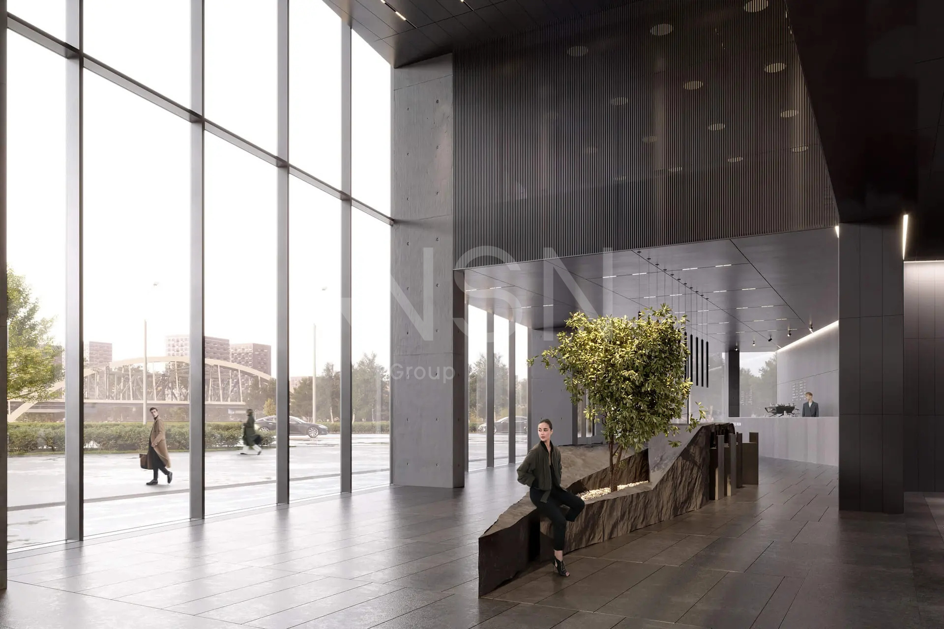 - Высота потолков: лобби 7, офисные этажи 3.75.