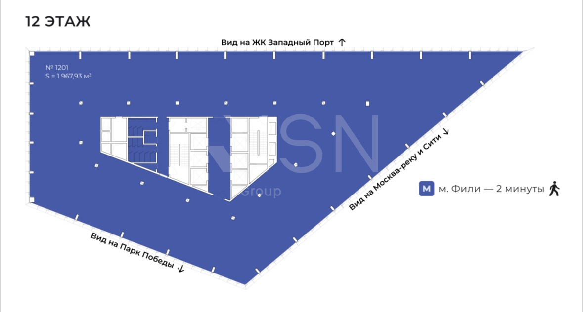 ПРОДАЖА офиса 1967.93 м2, 12-й этаж целиком. (№ 1201)В БЦ PORTA Workplace класса А.