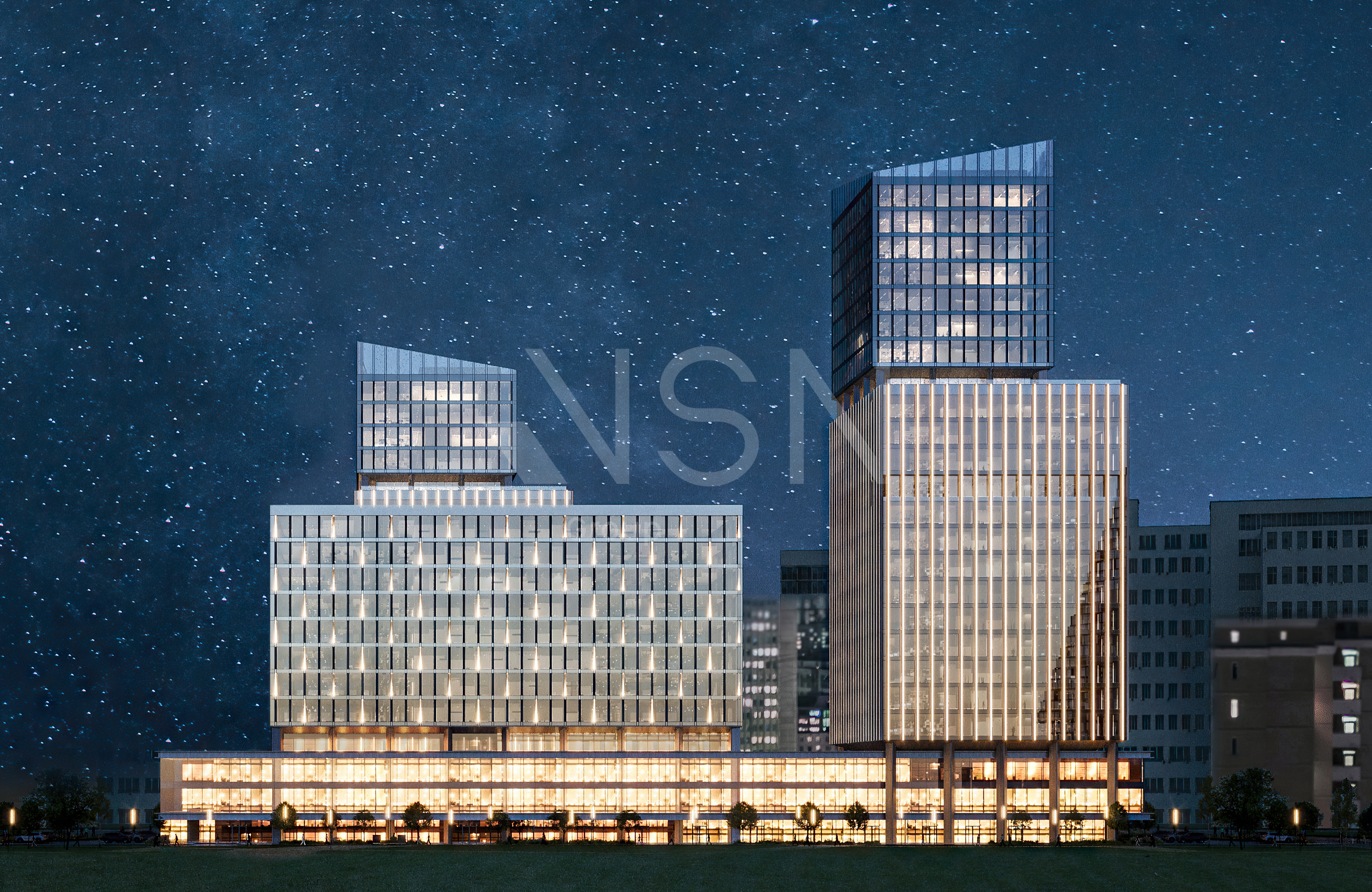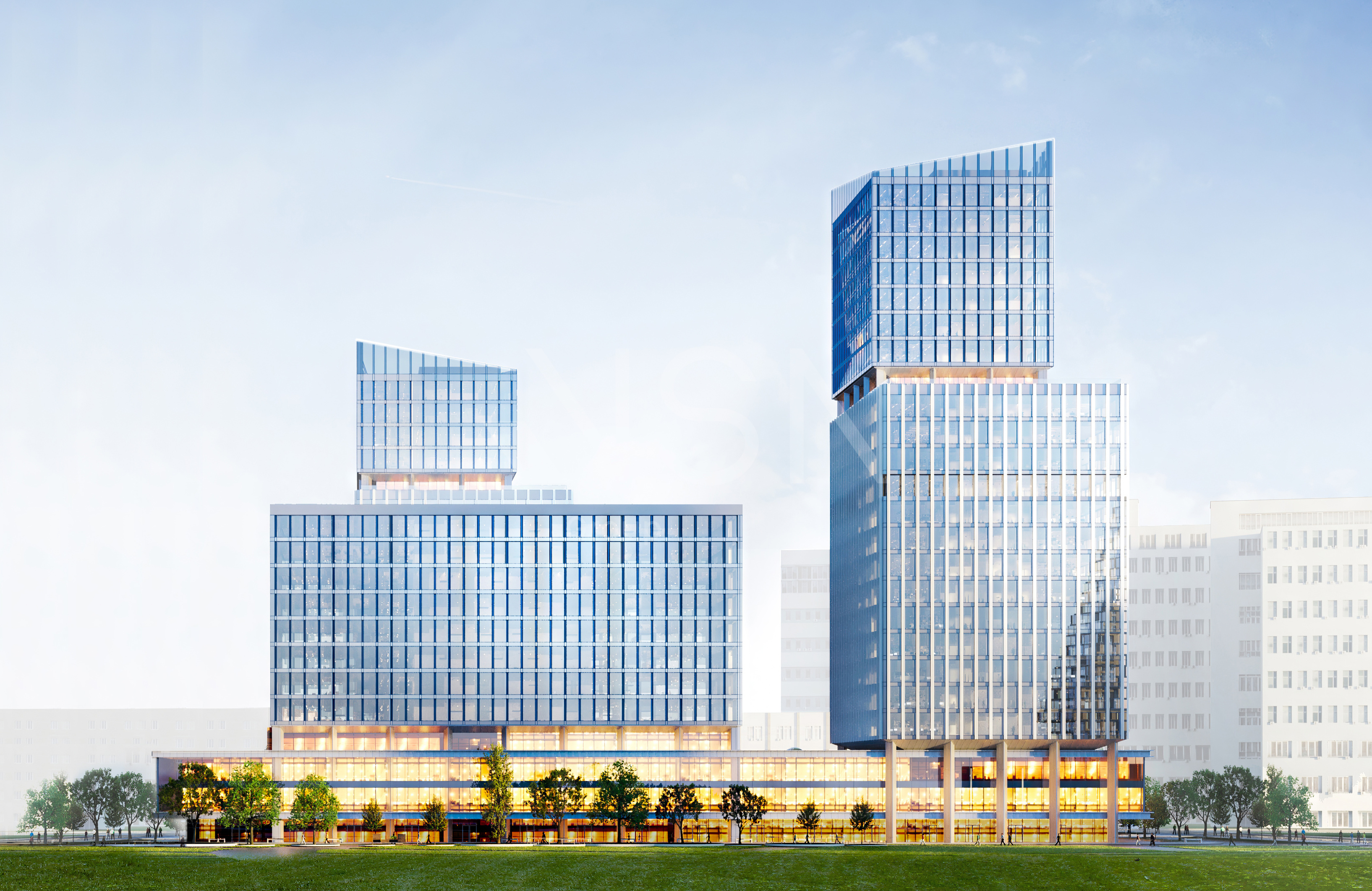 Проект имеет живой силуэт: три офисные башни с динамичным фасадом станут новой архитектурной доминантой района.