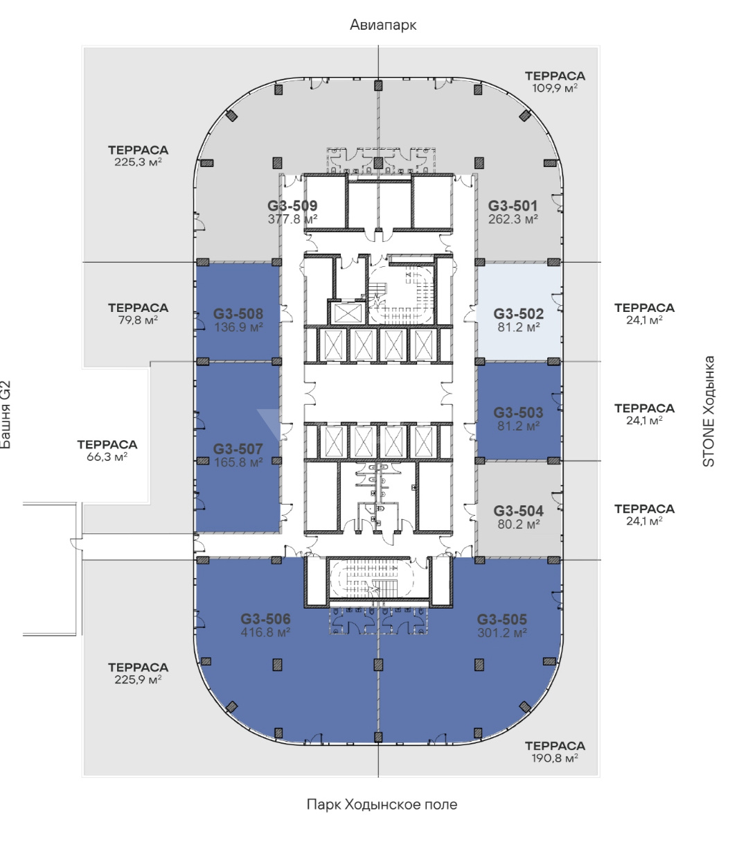 ПРОДАЖА офиса 301.2 м2 с террасой, 5-й этаж (G3-505).БЦ STONE Ходынка 2 класса А.