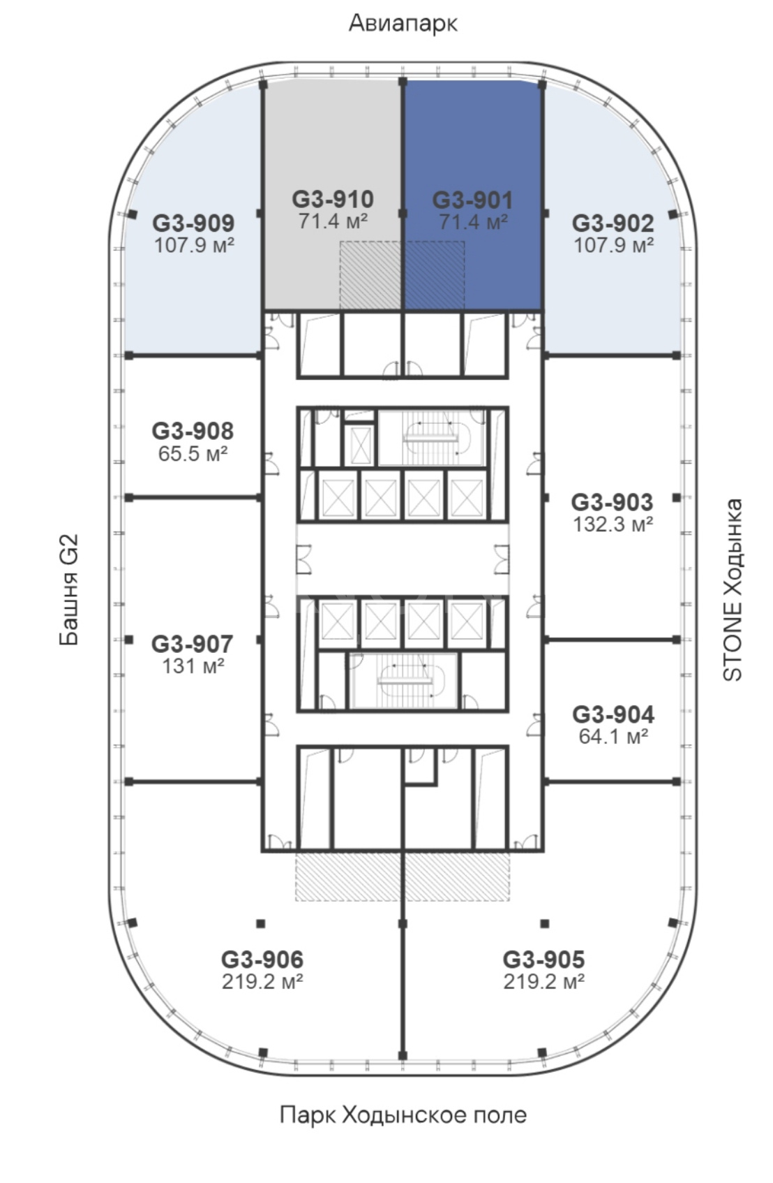 ПРОДАЖА офиса 71.4 м2, 9-й этаж (G3-901).БЦ STONE Ходынка 2 класса А.