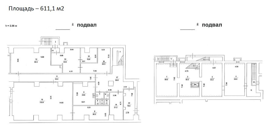 Высота потолков: 5 метра. Потолок в подвале 2.8 м 540 кВт.