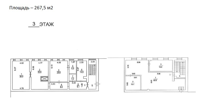 1 этаж- 1063,8 м2, 2- этаж 1232,7 м2,
