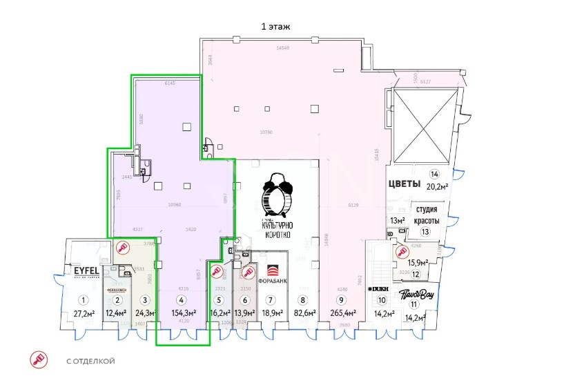 265.4 м2, 1-й этаж, отдельный вход, витрины