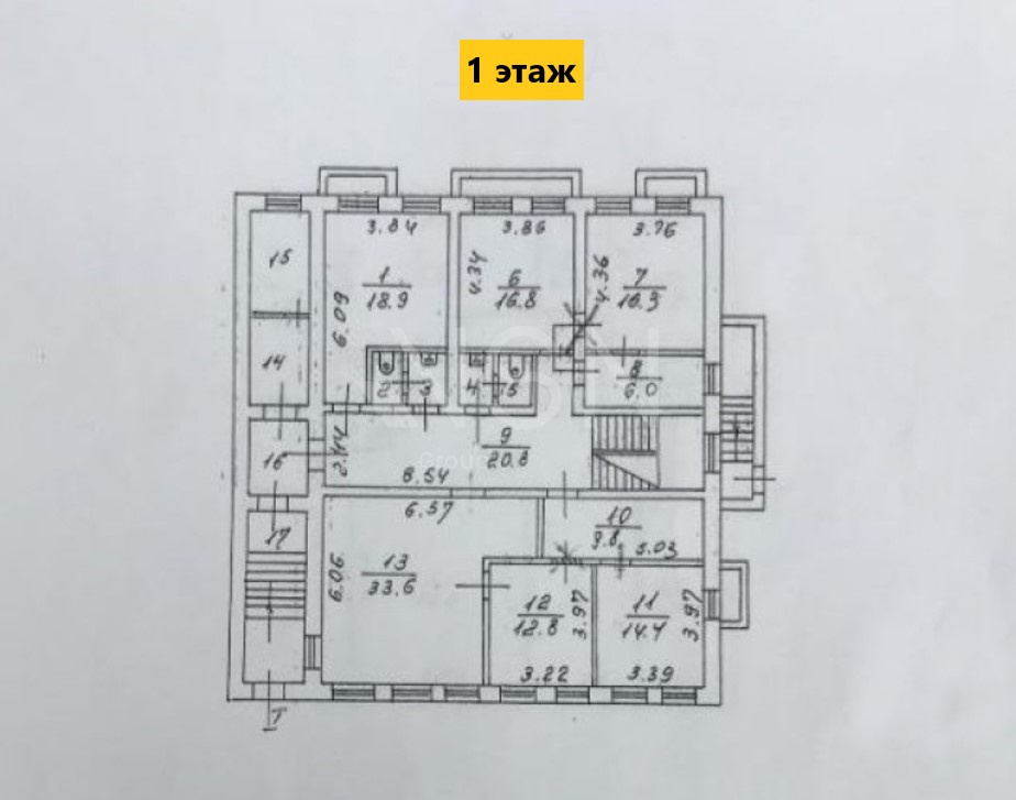 Кабинетная планировка, офисная отделка, центральные коммуникации.