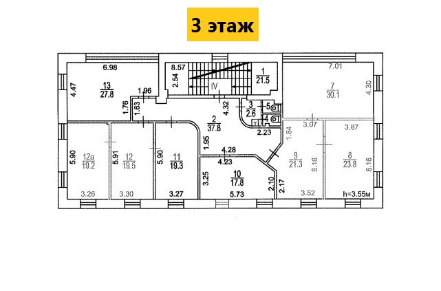 Кабинетная планировка, офисная отделка, центральные коммуникации.