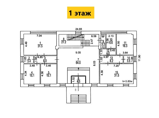 Кабинетная планировка, офисная отделка, центральные коммуникации.