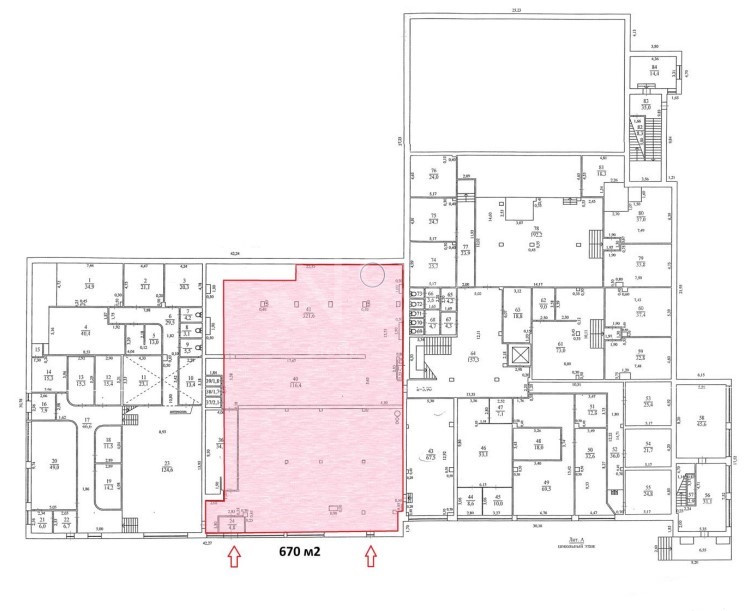 Площадь помещения 670 кв.м.