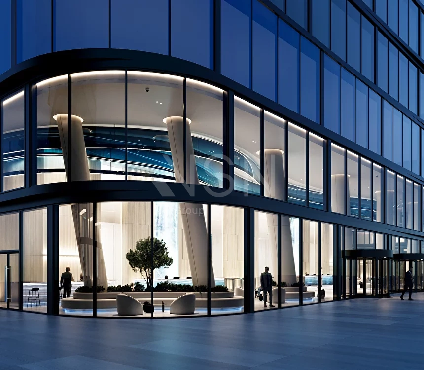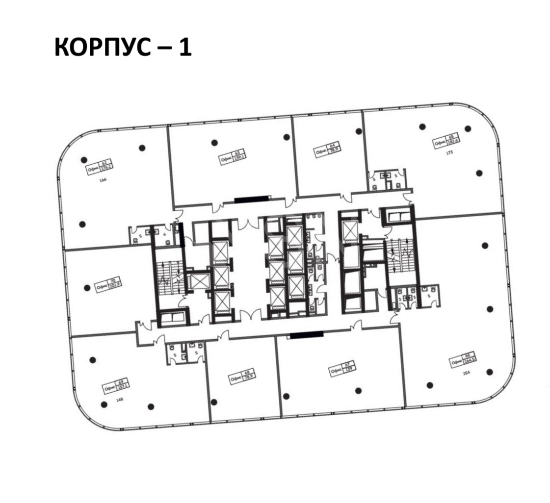 - Высота потолков: лобби 8 м, офисные этажи 3.95.