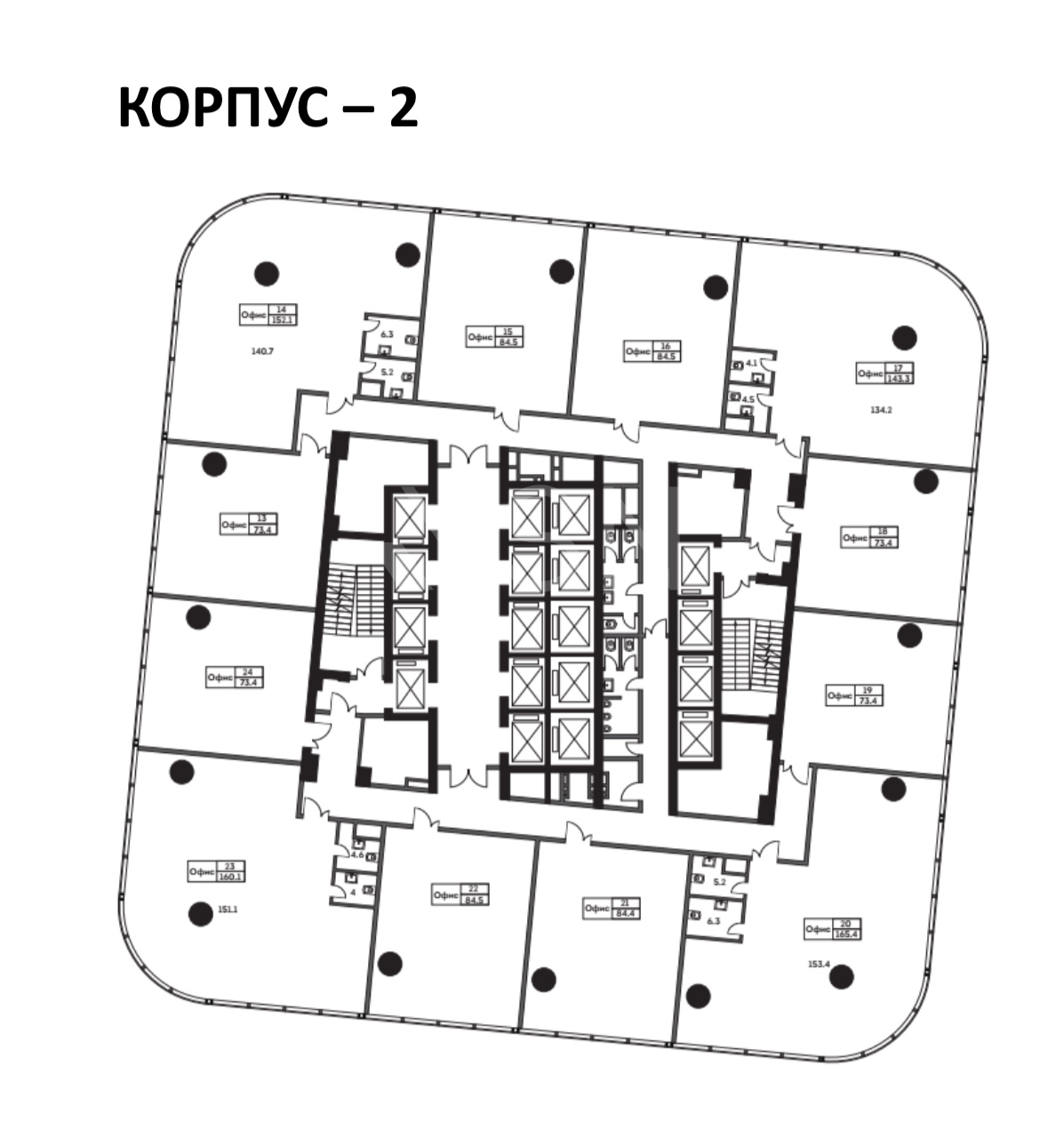 - Высота потолков: лобби 8 м, офисные этажи 3.95.