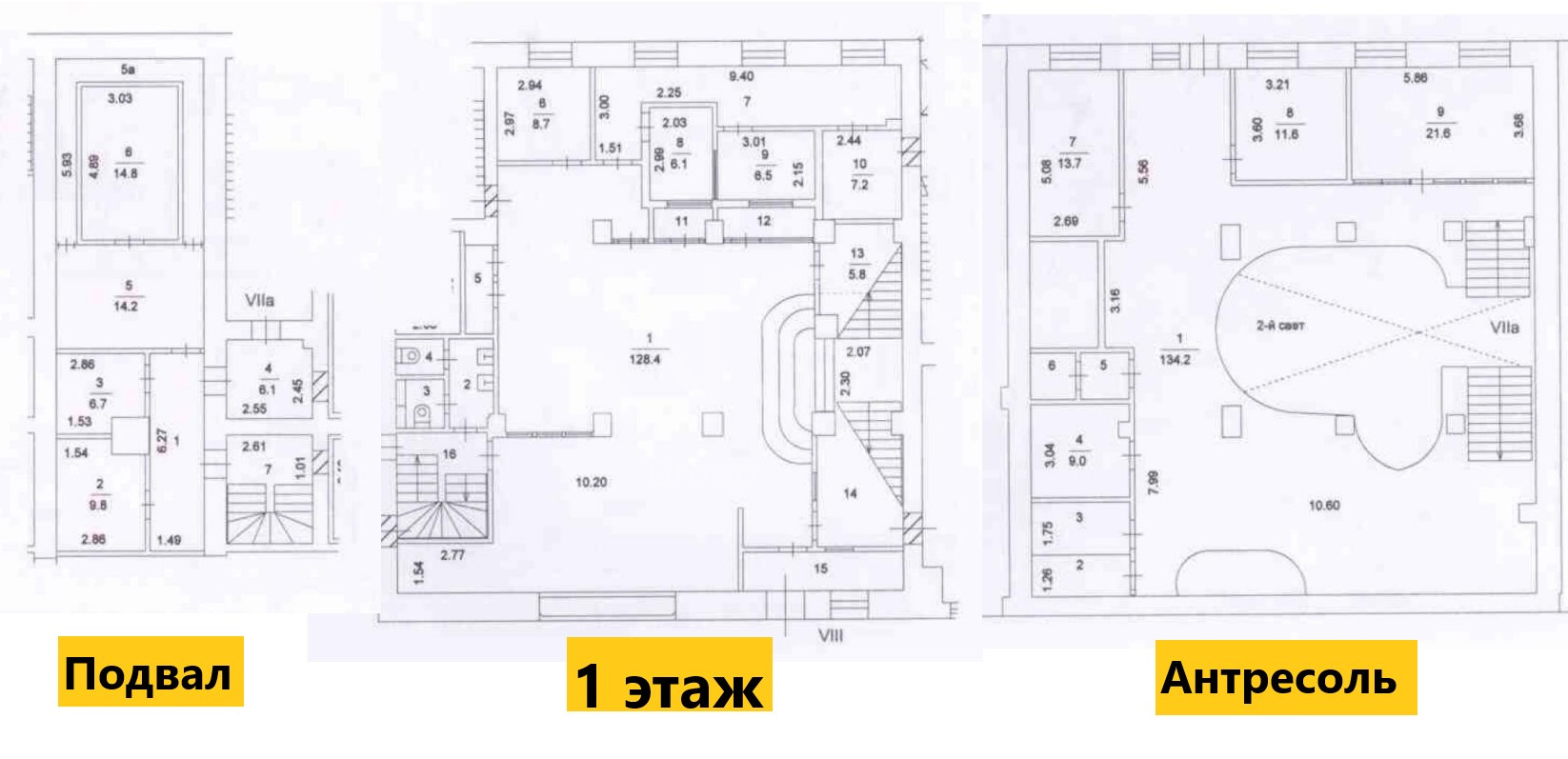 1 этаж 216,7 м2 + подвал 73,4 м2+ антресоль 203,8 м2.