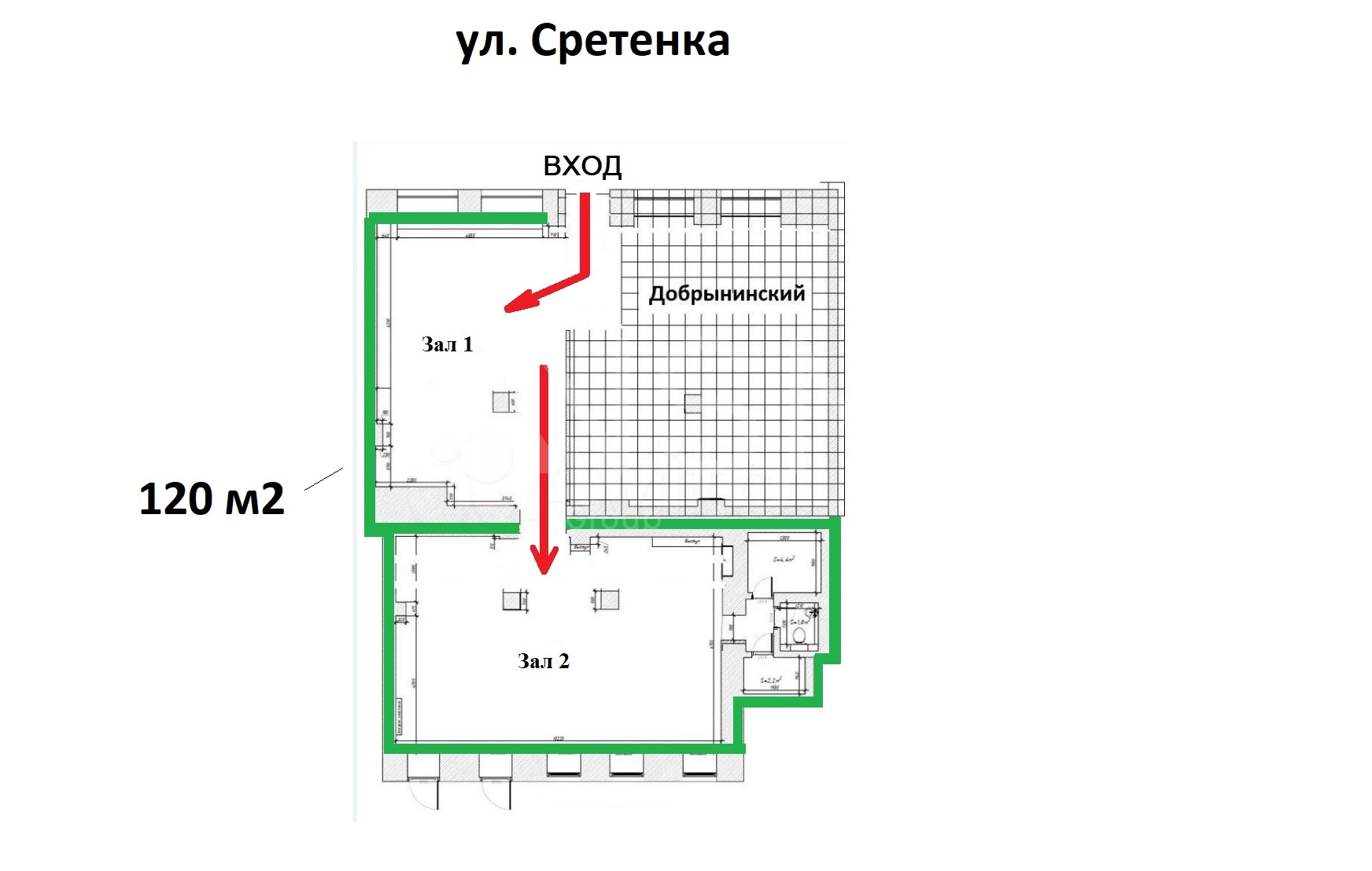 120 м2, трафик, м. Сухаревская