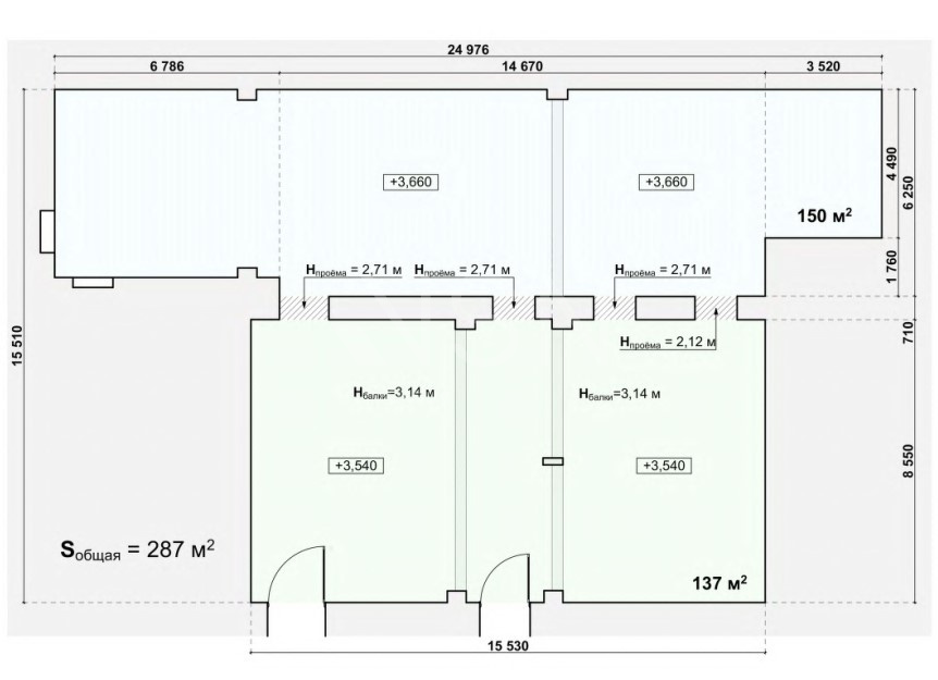 Высота потолков: 3.14 метра. 100 квт.
