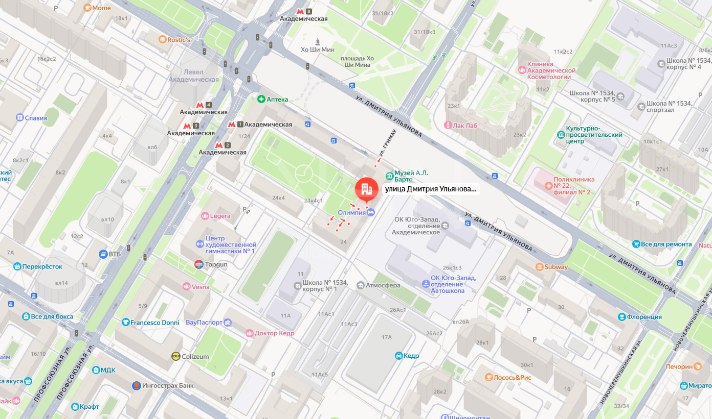 Адрес объекта: г.Москва, ул.Дмитрия Ульянова, д.24