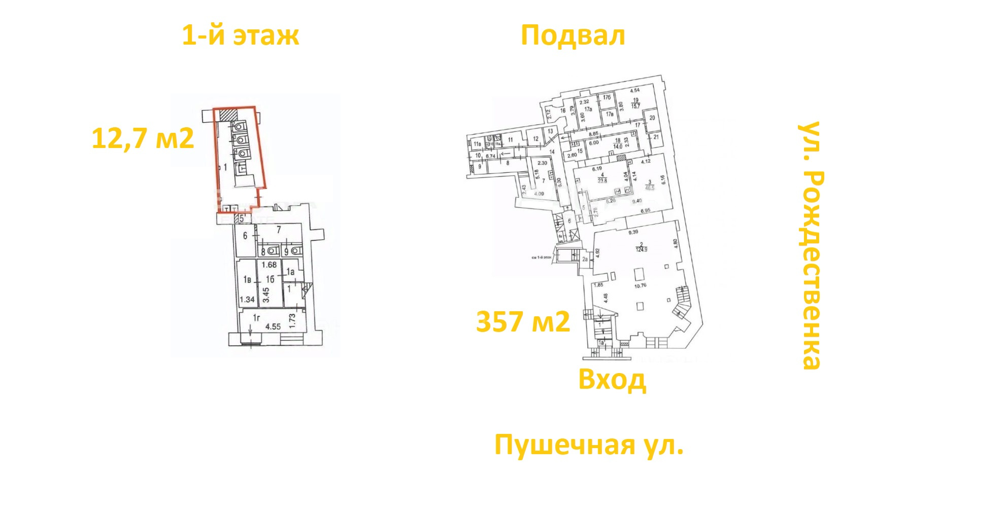 1-й этаж 12,7 м2, -1-й этаж 357 м2