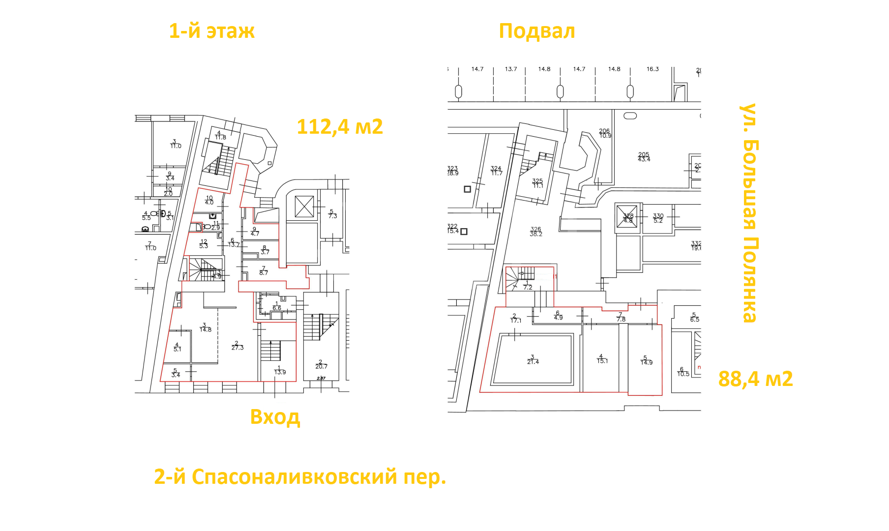 1-й этаж112,4 м2, подвал 88,4 м2, 1-я линия домов.
