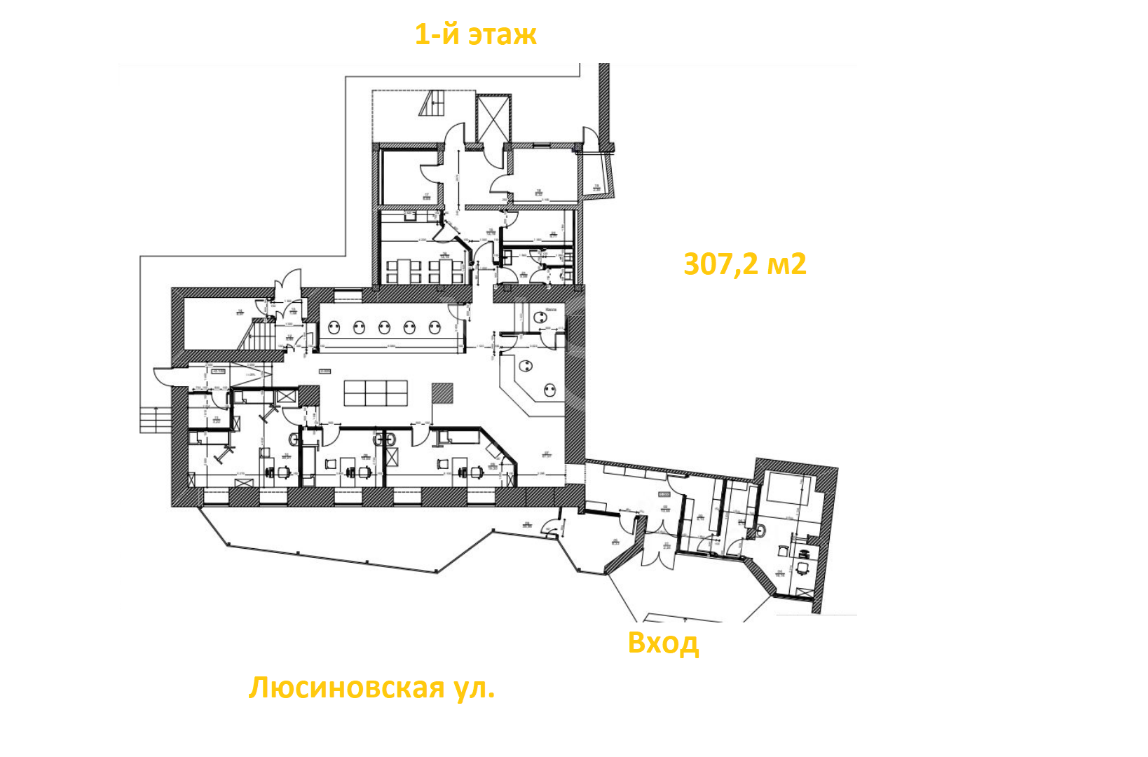 1-й этаж 307,2 м2, 2-й этаж 282 м2, 3-й этаж 220 м2
