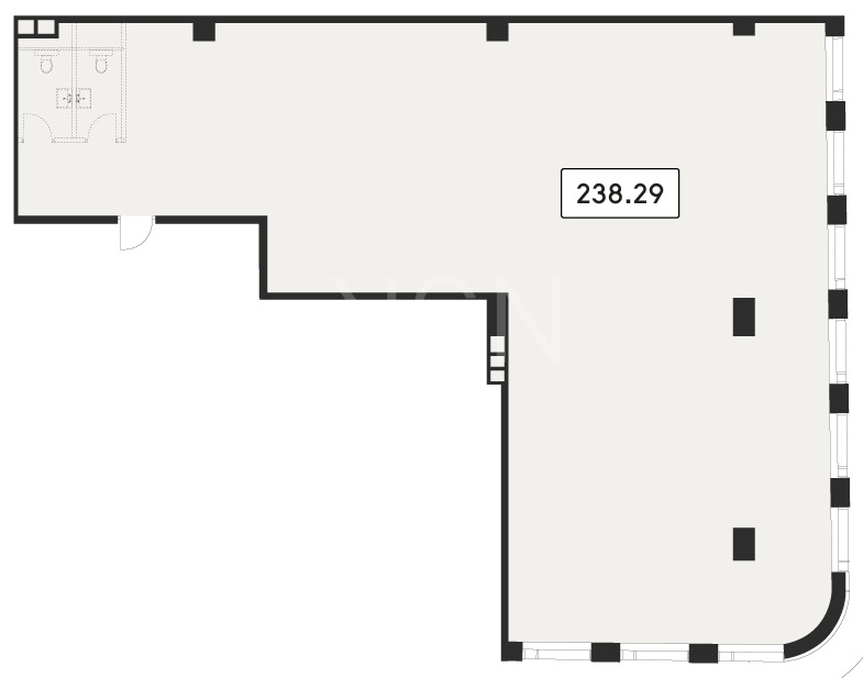 - Высота потолков: лобби 8, офисные этажи 3.65.