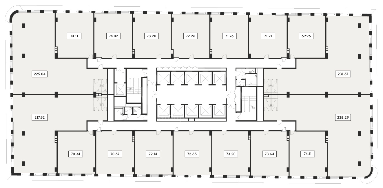 - Высота потолков: лобби 8, офисные этажи 3.65.