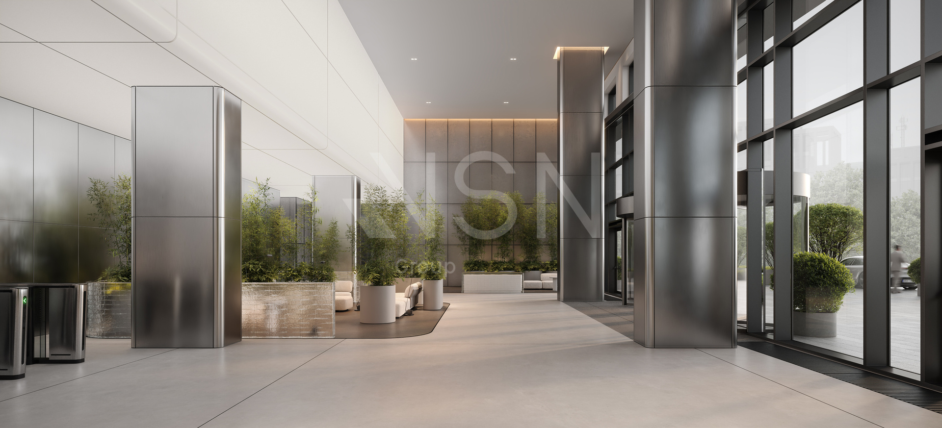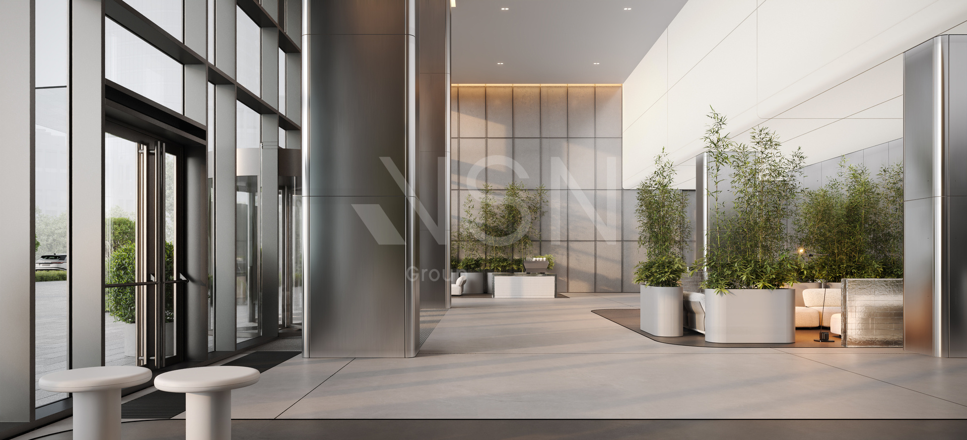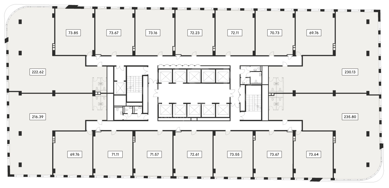 - Высота потолков: лобби 8, офисные этажи 3.65.