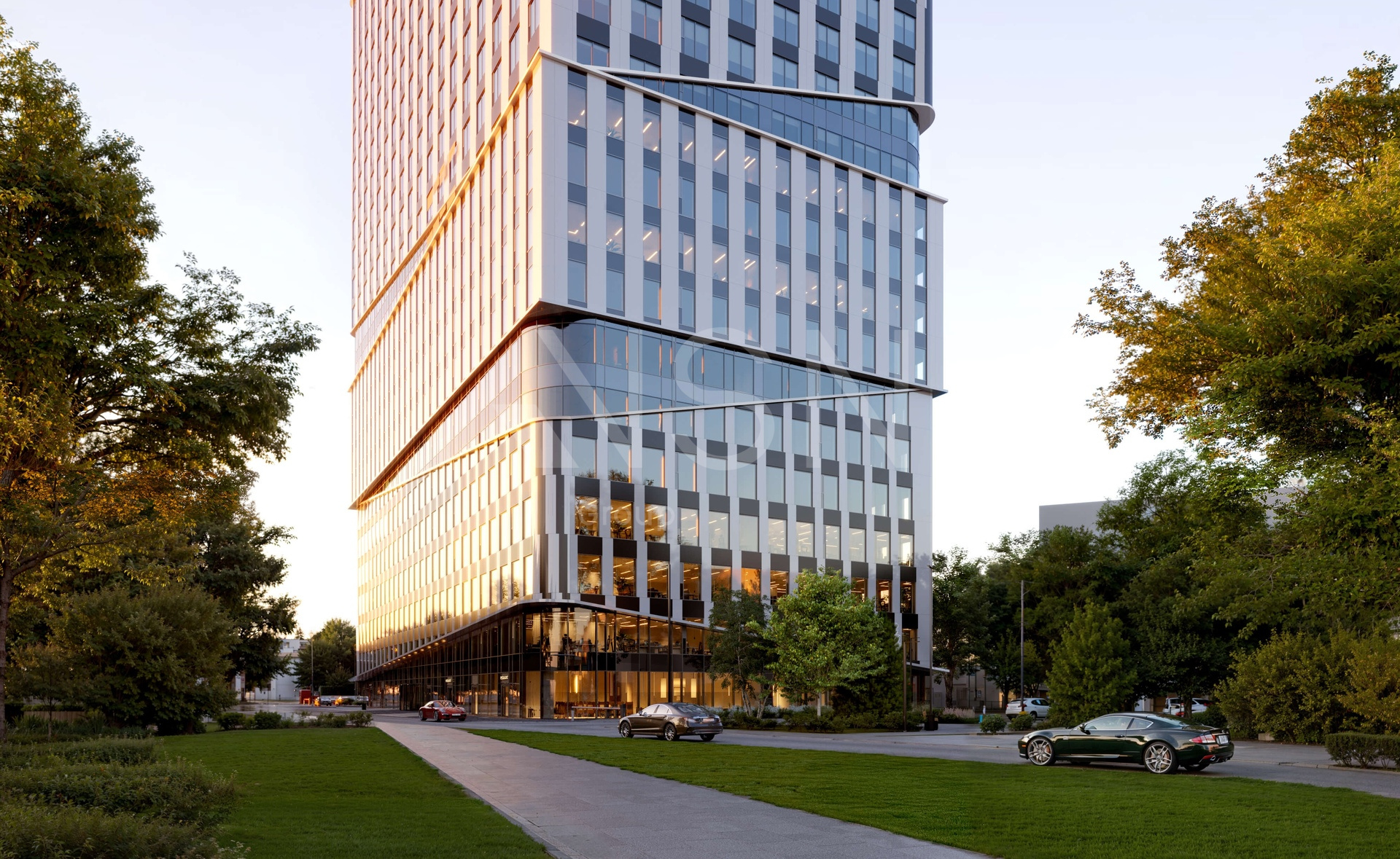 ПРОДАЖА офиса в Workplace класса А.Архитектурную концепцию разработали бюро PANACOM. Формообразование проекта вдохновлено поэтикой приподнятого занавеса, через который открываются виды на город.