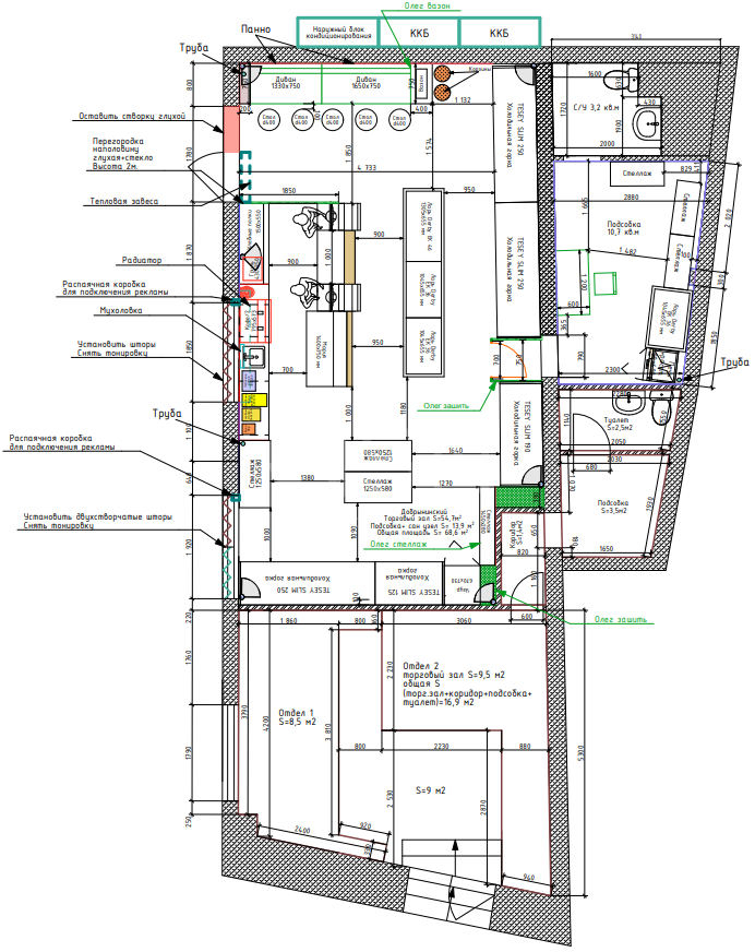 Помещение угловое. Мощность 60 кВт. Высота потолков 3,5 м.