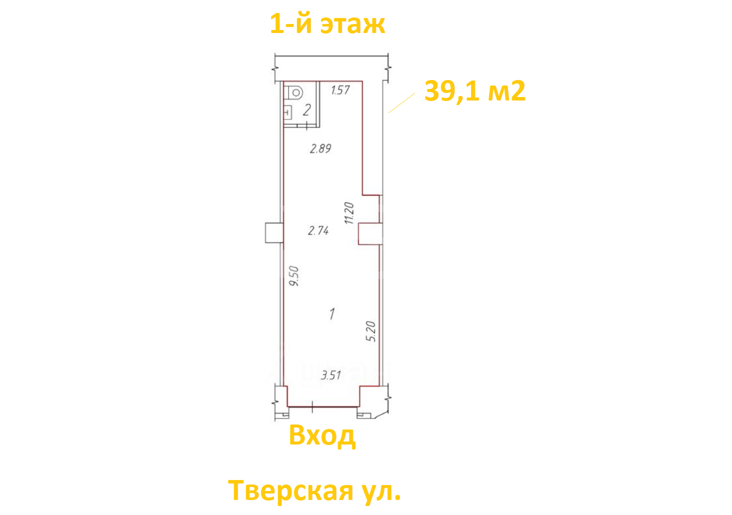 ПСН, 39,10 м², Витрины , Трафик, 1-ая линия, 40 кВт