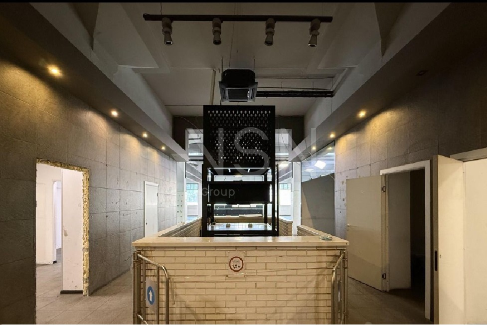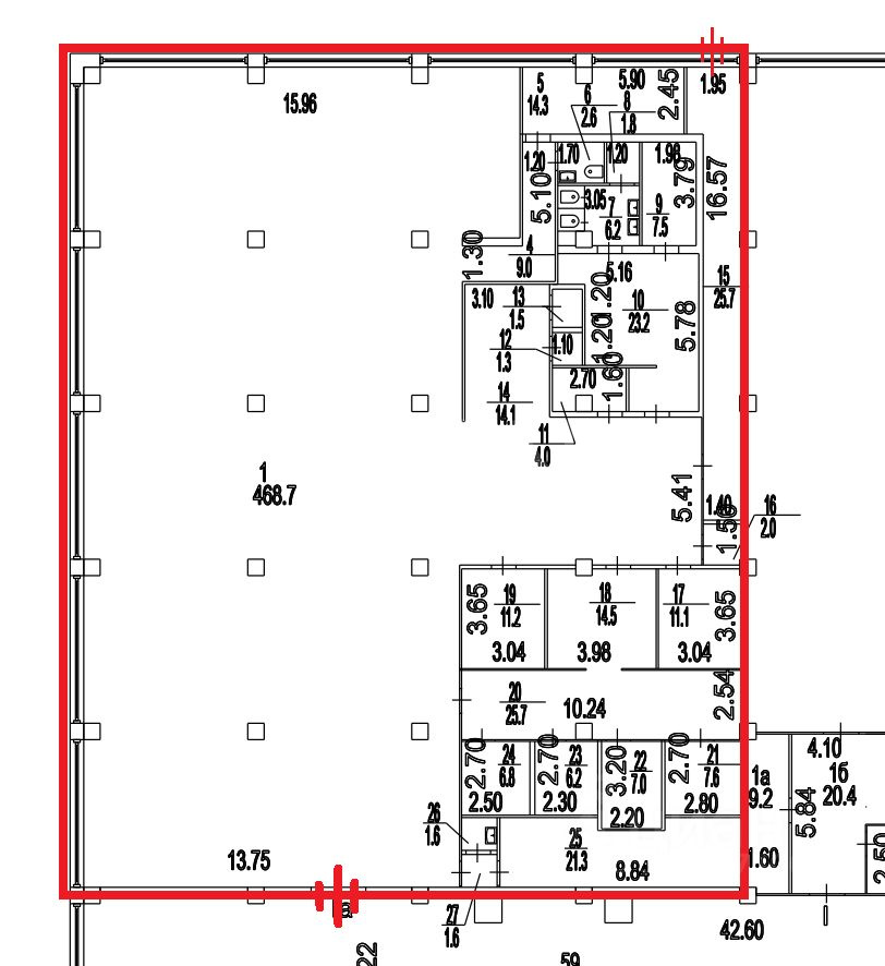 Смешанная планировка: зал, санузлы, кабинеты без окон.