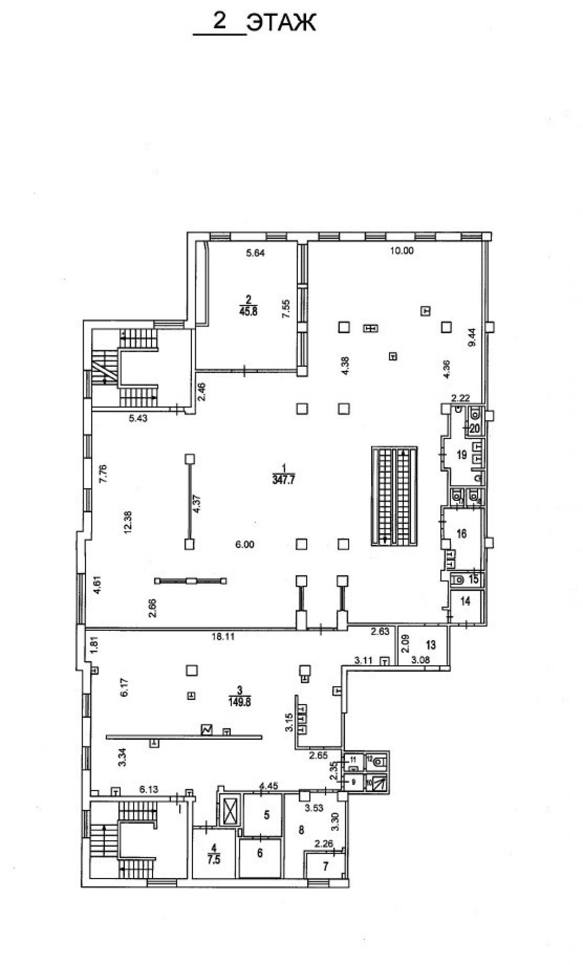 Второй этаж 614 м2. Высота потолков 3,54 м.