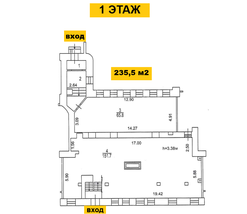 1-й этаж: 235,5 м2, подвал: 237,8 м2.