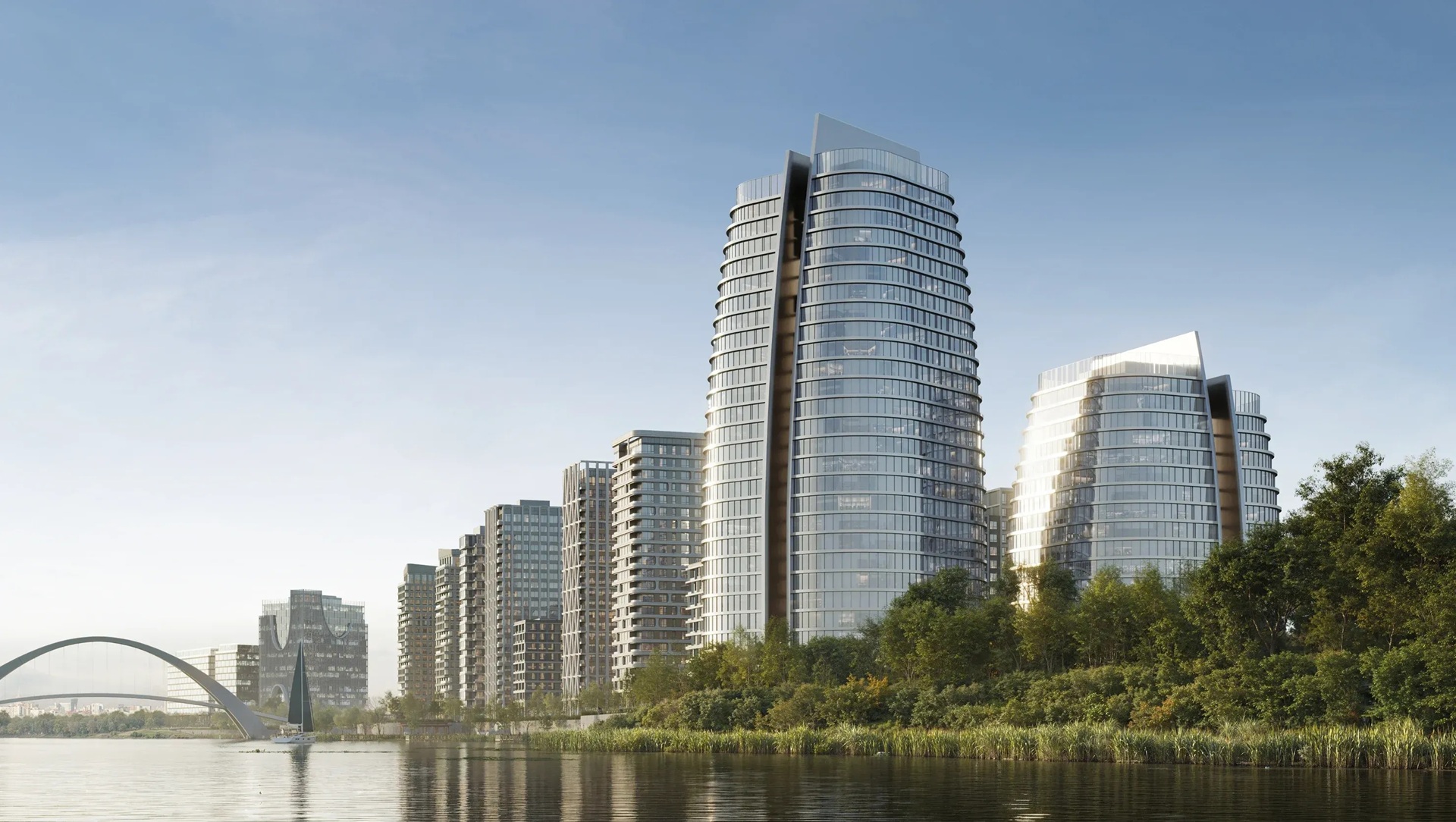 Архитектурную концепцию разрабатывает бюро Kleinewelt Аrchitekten. Ключевой принцип проекта — гармоничный диалог с контекстом. Архитекторы создали захватывающую симфонию формы и света, где обтекаемые объемы башен дополнены яркими акцентными линиями.