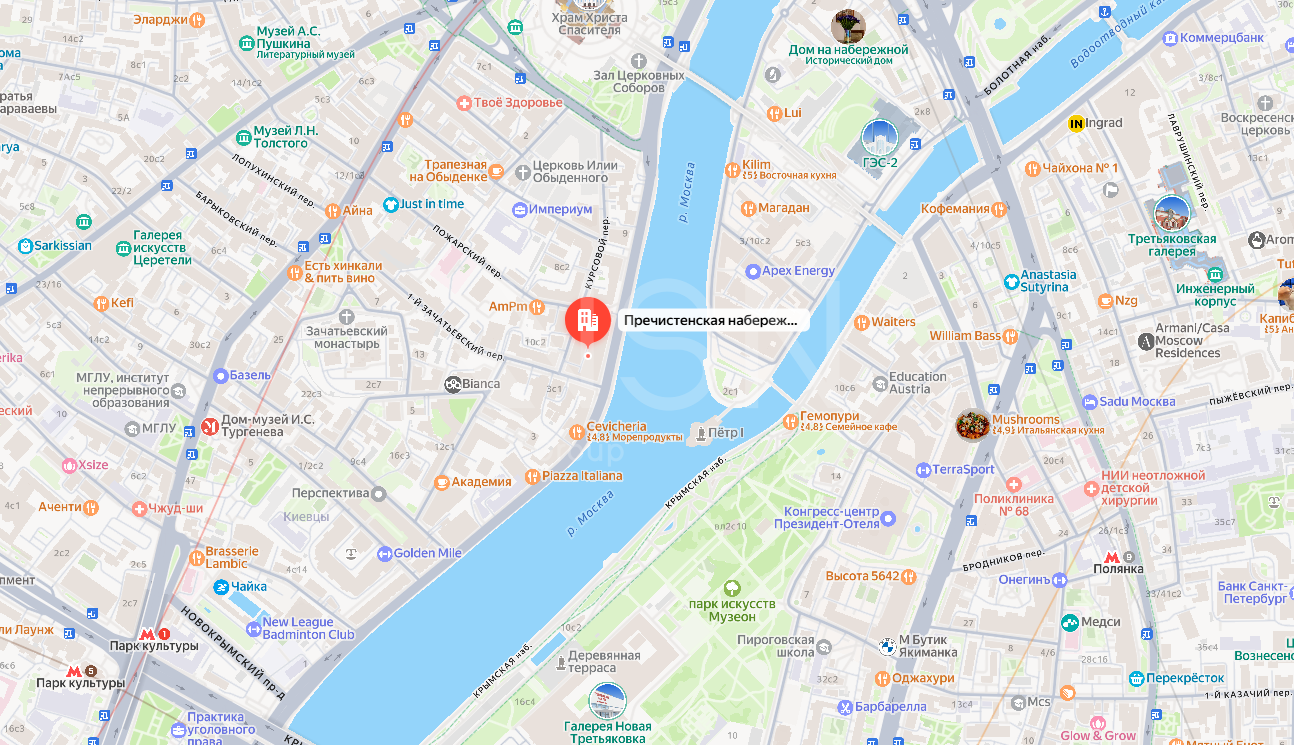 Адрес объекта: г. Москва, набережная Пречистенская, д. 17-19
