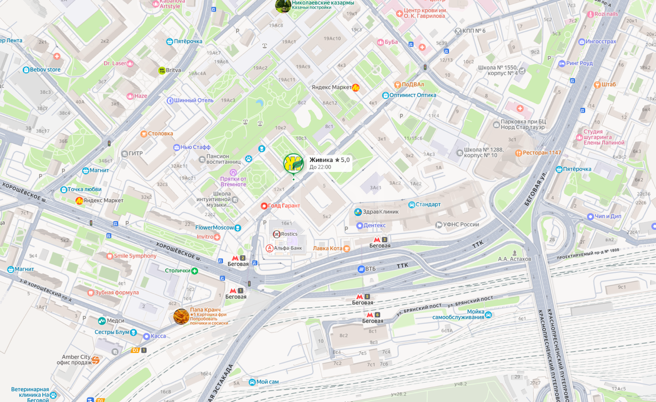 Метро Беговая, 5 минут пешком.