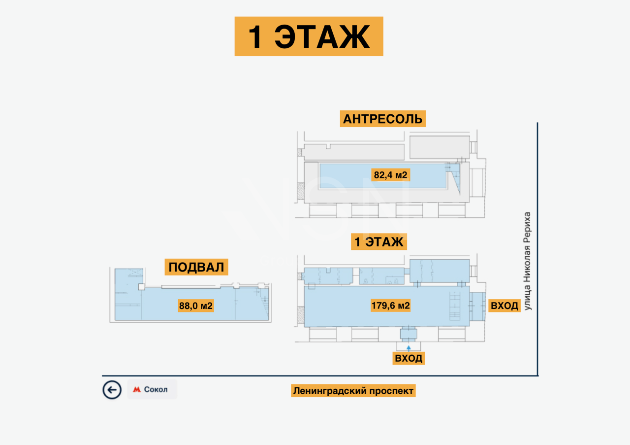 ПРЯМАЯ АРЕНДА.М. Сокол, 5 минут пешком.
