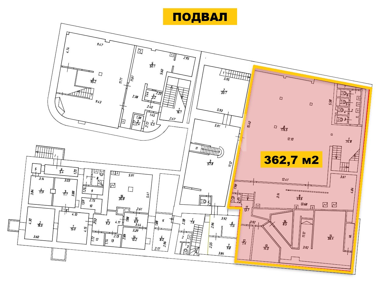1-этаж: 89,7 м2 подвал: 362,7 м2.