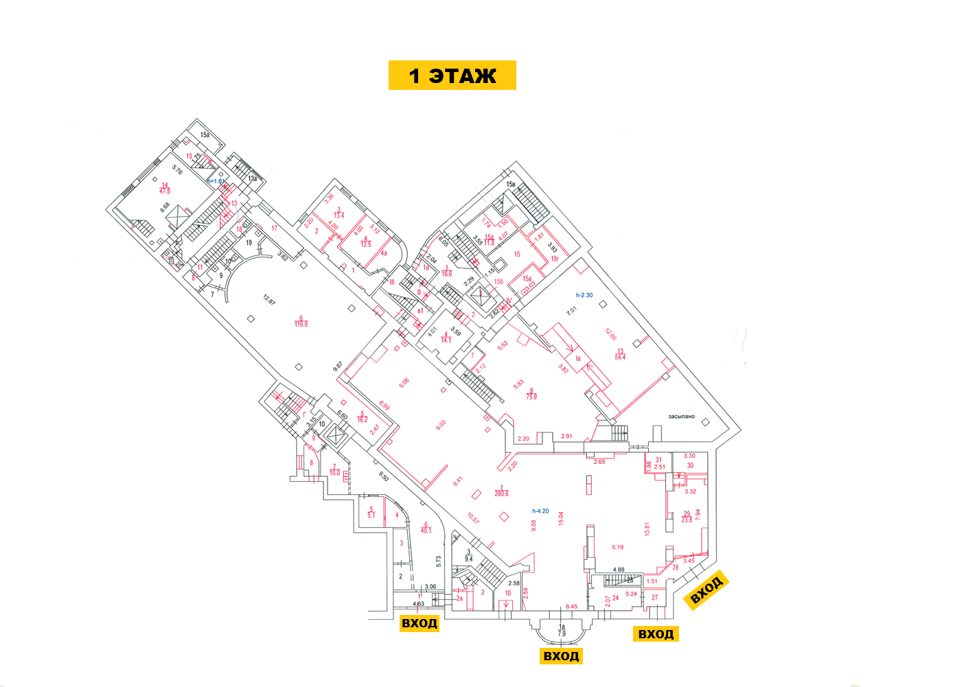 1-я линия, Высота потолков до 4,2 м.