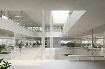 Архитектурное бюро «KLEINEWELT» подготовило ультрасовременный проект премиального бизнес центра с лаконичным дизайном и современными материалами.