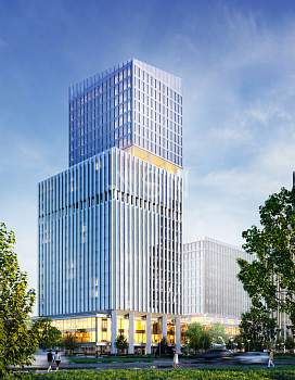 AIR- премиальный бизнес-центр на Ходынском бульваре, состоящий из трёх разновысотных корпусов, объединённых подземной двухуровневой автостоянкой, авторская архитектура от бюро ADM architects.