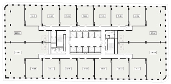 - Высота потолков: лобби 8 м, офисные этажи 3.65.