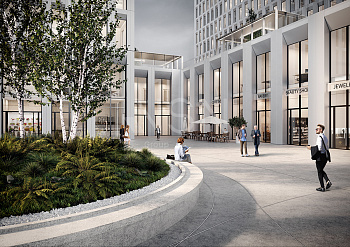 Основной доступ осуществляется через вход между башнями – центральная торговая галерея обеспечивает связь со стороны благоустроенной территории.