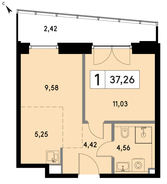 В продаже 1-комнатная квартира без отделки на 31 этаже, Корпус H.