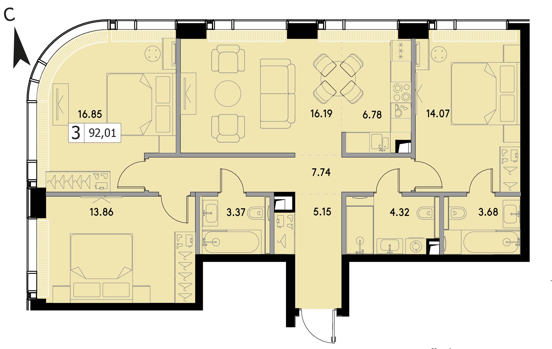 Представляем вашему вниманию 3-комнатная квартира без отделки у метро Сокольники на 13 этаже, Корпус 2. Жилой комплекс «Ренессанс» объединяет в себе все преимущества современного элитного жилья. Удачная локация, стильные архитектурные решения, эргономичные планировки, панорамные окна, развитая инфраструктура, новейшие системы безопасности, собственный подземный паркинг, двор-парк с изысканным ландшафтным дизайном и фонтаном, детскими городками и спортивными площадками, фитнес-клуб с бассейнами для детей и взрослых – в ЖК «Ренессанс» всё создано для Вашего комфорта!