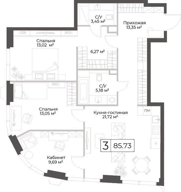 Представляем вашему вниманию 3-комнатная квартира без отделки на 20 этаже, Корпус 1.