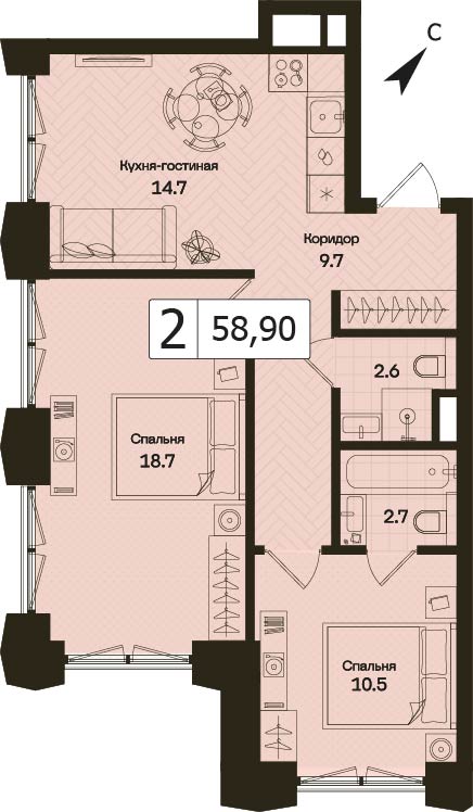 Представляем вашему вниманию 3-комнатная квартира без отделки на 5 этаже, Корпус 1.1.