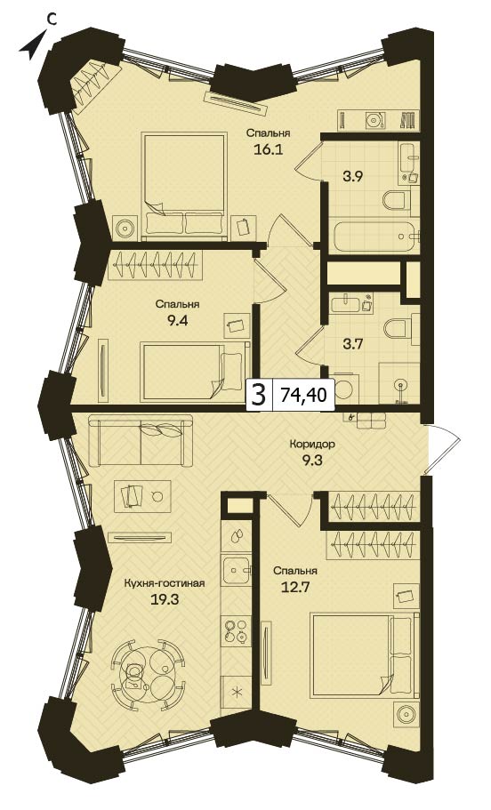 4-комнатная квартира с отделкой у метро Мякинино, Трикотажная на 25 этаже, North 6. Жилой комплекс "City Bay" представляет собой удивительное открытие для тех, кто ценит гармонию городской жизни и красоты природы. Здесь можно найти идеальное сочетание развитой инфраструктуры и прекрасно обустроенной набережной, а современный архитектурный стиль выглядит еще более впечатляюще на фоне водной глади.