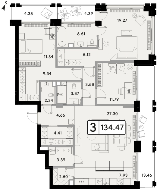 Представляем вашему вниманию 3-комнатная квартира без отделки на 12 этаже, Корпус 1. Дома у Площади – это современные стильные дома бизнес-класса высотой от 6 до 12 этажей, расположенные рядом с событийной площадью и парком. В конструктивном отношении представляют собой здание с железобетонным каркасом, с архитектурной точки зрения состоят из 6 секций, объединенных стилобатом, формирующих закрытый двор без машин. Дизайнерские лобби со всеми современными удобствами и панорамным остеклением, с отделкой из премиальных материалов. Квартирография соответствует ДНК проекта: площади увеличены, увеличено также количество и размер окон, отдельно предусмотрены мастер-спальни, выделены гардеробные и помещения для хранений. Экспозиция представлена линейными, угловыми и распашными квартирами, а для ценителей эксклюзива предусмотрены редкие форматы: двухуровневые квартиры, квартиры с террасами.