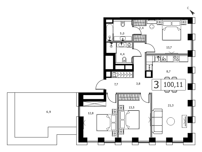 Представляем вашему вниманию 3-комнатная квартира без отделки у метро Сокол на 29 этаже, Корпус 5.